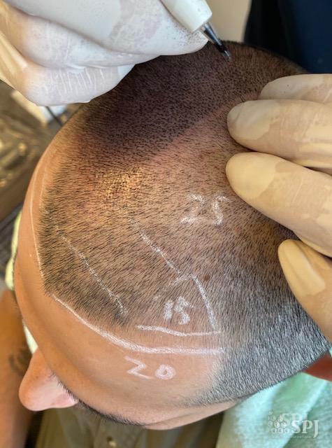 私はフロント中央に濃い毛が残っているので、M字部分だけで3種類の濃さのドットが入っています。